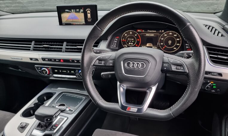 This Highly desirable Q7 is truly an outstanding example, the vehicle is immaculate inside and out and has been fastidiously maintained by an Audi Main Dealer with 7 x Audi Services and 1 x Independents. 2 x keys. The S line trim enhances the already Prestige Q7, featuring desirable additions such as Audi Matrix LED headlights with Main Beam assist for superior visibility and Audi Phone Box with wireless phone charging for seamless connectivity. highlighting how this Q7 offers enhanced safety and convenience compared to others. Its acceleration from 0 to 62mph in just 6.5 seconds demonstrates its dynamic capability, while its position in a low insurance group further adds to its appeal as a practical and enjoyable premium SUV. This Audi Q7 will come with a Fresh Service and a New MOT. Full Inspection Plus a Free 3 Month Peace of Mind AA Warranty and Breakdown Cover. Full Finance options available. Part Exchange Welcome! We are a 5 Star rated Dealer by our Customers and Voted “Most Customer Focused Used Car dealership in Suffolk 2020” and “Used Car Specialist of the Year” 2021, 2022, 2023, 2024 and 2025. FCA Registered and Regulated and a AA Dealer. P/X Welcome. For a Finance quote or to book a Test drive just give us a call.