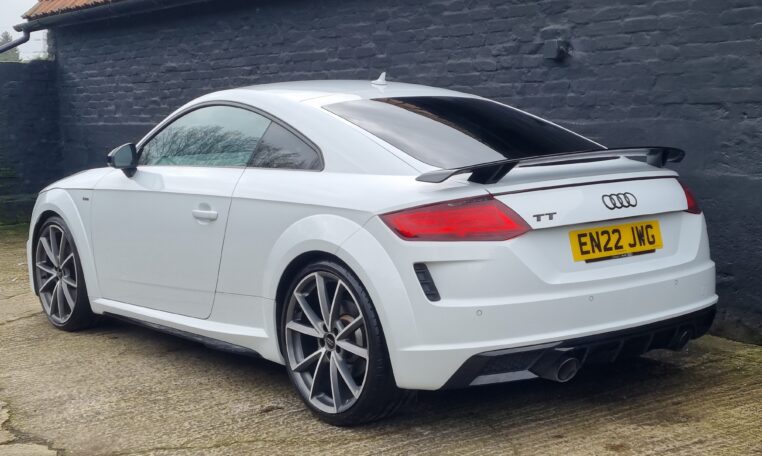 We are delighted to offer this Simply Stunning and Highly Desirable 2022 Audi TT TFSI Black Edition in white. As a Black Edition model, the car comes equipped with the desirable features such as a Virtual Cockpit. High Gloss Black fixed rear spoiler with matching side skirts and door mirrors. Leather/ Alcantara Super Sport Seats with 3 stage Heating. Upgraded striking 20 inch alloy wheels in matt titanium with a diamond cut design and all tyres have plenty of tread left. Rear Privacy Glass. Satellite Navigation with Voice Control. Smart Phone Connect. Audi Drive Select. DAB. 2 x keys. We operate on an Appointment only Basis, please call to arrange a Test Drive.